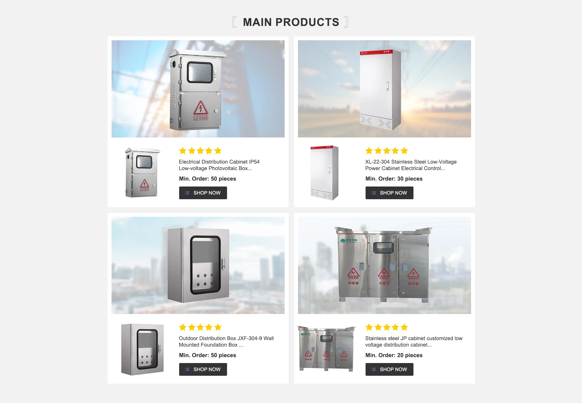 Our company mainly produces various electrical products, specializing in the production of various distribution boxes, cabinets, and customized electrical equipment. The company's products are used for household, photovoltaic, and automation equipment distribution. Our company has rich experience in customized products, very favorable price schemes, and advanced production technology Our company mainly produces various electrical products, specializing in the production of various distribution boxes, cabinets, and customized electrical equipment. The company's products are used for household, photovoltaic, and automation equipment distribution. Our company has rich experience in customized products, very favorable price schemes, and advanced production technology